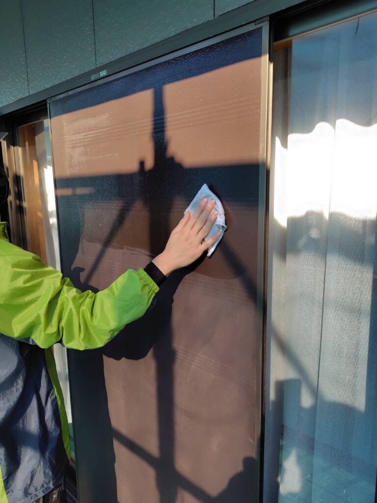 施工前状況下地調整ランダムサンダー研磨プライマー塗布疎水材1回目塗布FCコート塗 ...