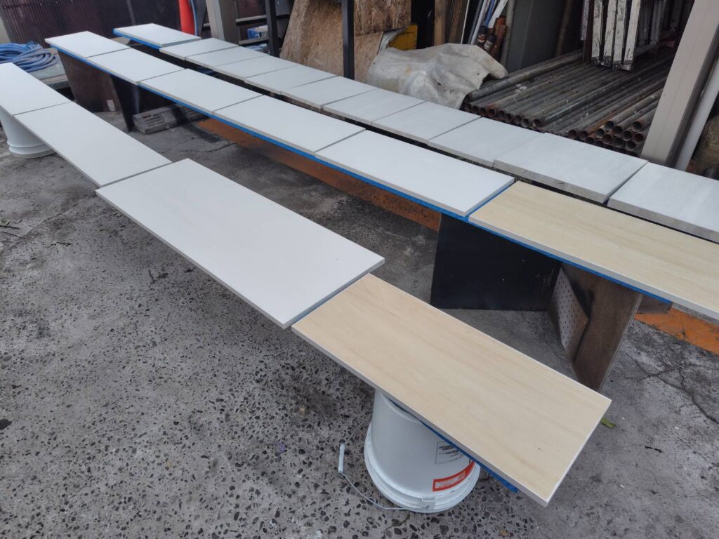 施工前状況下地調整ランダムサンダー研磨プライマー塗布疎水材1回目塗布FCコート塗布スタンプ ...